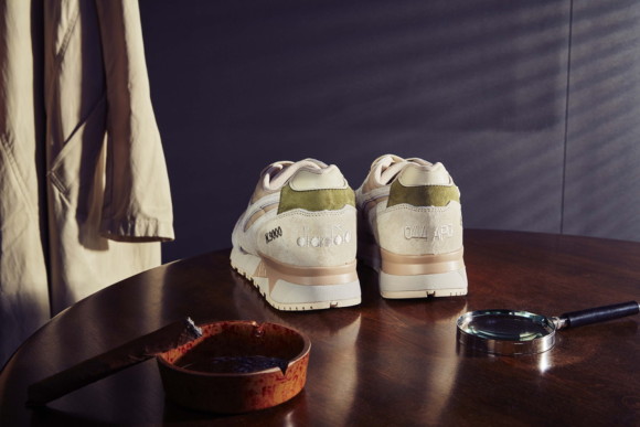 サスペンス・テレビ映画「刑事コロンボ」に登場する、ロサンゼルス市警察殺人課の「警察官コロンボ」を表現したスニーカーは、ディアドラの「N9000」をベースにした。「N9000」は当時イタリア代表が着用するトレーニングシューズとして開発され、イタリア語で“中立”を意味する“NEUTRA”から命名されたスニーカーだ。カラーリングは「警察官コロンボ」が着用しているレインコートが着想源。また、シュータンやインソールには愛犬のオリジナルグラフィックをデザインした。右足のヒールには、愛車のナンバープレート”044”が刺繍で施されており、ファンにはたまらないマニアックな仕上がりとなっている。